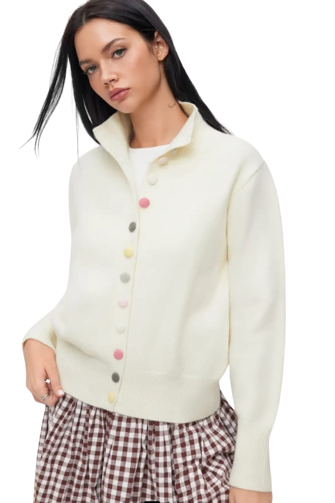 KNIT COLOR BUTTON CARDIGAN